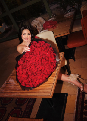 وارتدت هيفا فستانا قصيرا باللون الأحمر بكتف واحد، وبدت في إحدى الصور وهي تحمل باقة ورود حمراء كبيرة.