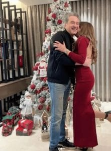 وبدا في الصور وهو يحتضن زوجته التي اختارت فستانًا أنيقا باللون الأحمر ليتناسب مع أجواء الميلاد، وظهرا في غاية الحب والألفة، وأرفق الصور بتعليق كتب فيه: “ميلاد مجيد.