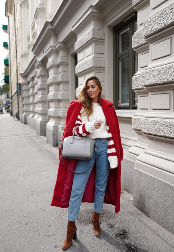 المعطف الأحمر من أجمل القطع التي يمكنك اعتمادها في فترة الأعياد. فالمعاطف الملوّنة رائجة هذا الشتاء ويمكنك أن تتأكدي من ذلك إذا اطلعت على أجدد صيحات المعاطف النسائية ، والمعطف الأحمر طبعاً أجملها كونه الأجمل في شهر ديسمبر!