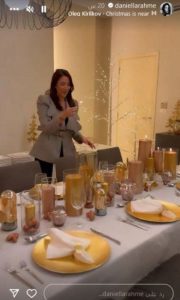 وظهر في مقاطع الفيديو، شجرة الميلاد الكبيرة المزينة بطابات غلب عليها اللون الذهبي، كما ظهرت دانييلا بمقطع فيديو آخر وهي تضيء الشموع الذهبية على طاولة مزينة بأطباق وشمعدانات وديكورات أيضاً باللون الذهبي.