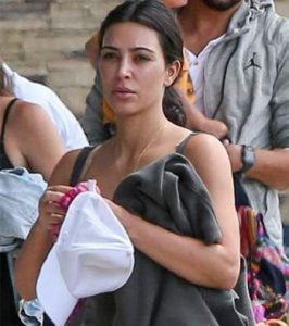 وظهرت كيم بالصور المنتشرة من دون مكياج وبدت متعبة كثيرا وبشرتها بعيدة كل البعد عن النضارة بل بدت باهتة جدا والهالات السوداء ظاهرة على عينينها، وكأنها لم تنم منذ ساعات طويلة.