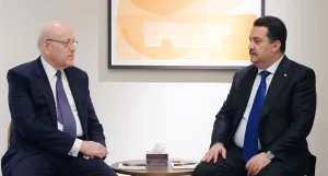 كما اجتمع ميقاتي مع رئيس الحكومة العراقية محمد شياع السوداني، وجدد شكر العراق على وقوفه الدائم الى جانب لبنان.