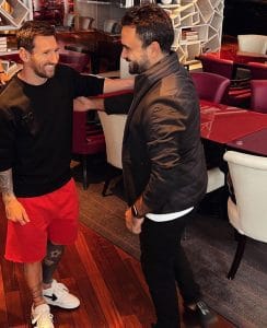 والتقى الفنان نادر الأتات لاعب كرة القدم ليونيل ميسي خلال تواجده في باريس لمتابعة المباراة الافتتاحيّة لدور المجموعات على ملعب “حديقة الأمراء” في العاصمة الفرنسيّة.