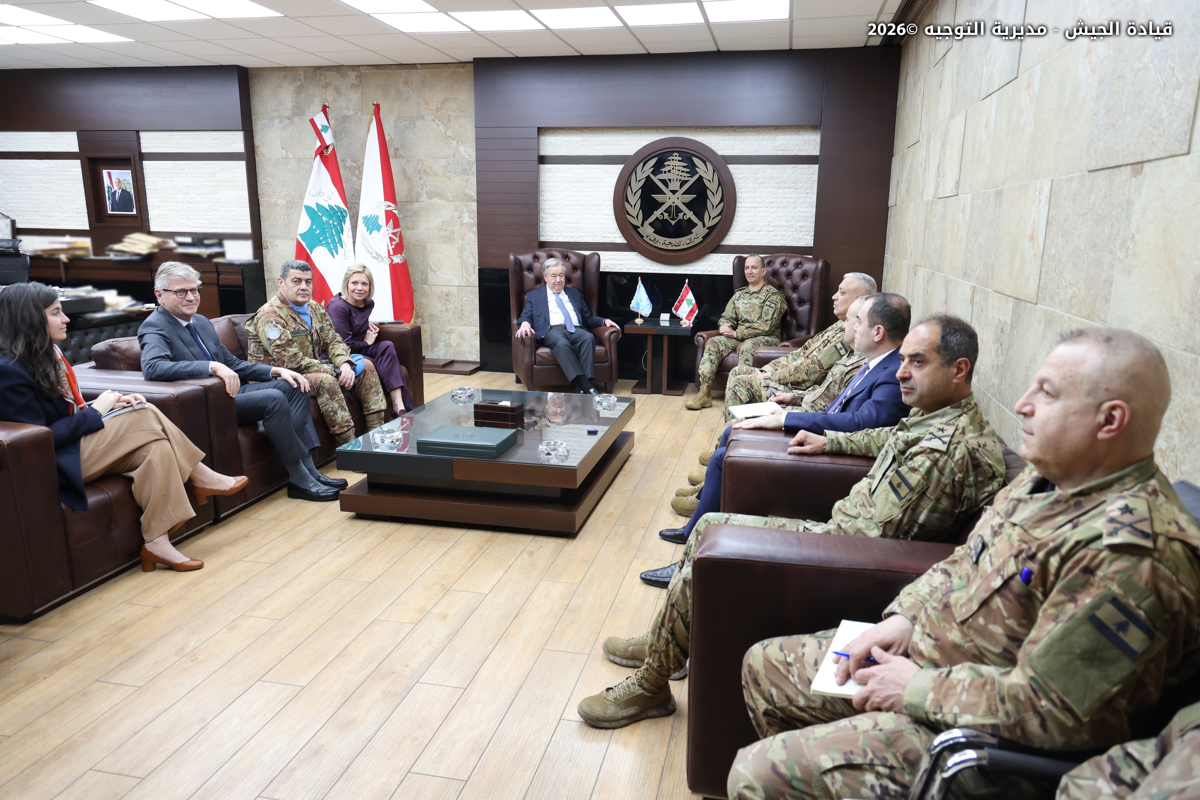 استقبل قائد الجيش العماد رودولف هيكل في مكتبه في اليرزة الأمين العام للأمم المتحدة أنطونيو غوتيريش، يرافقه وكيل الأمين العام للأمم المتحدة لعمليات السلام جان-بيار لاكروا، والمنسقة الخاصة للأمم المتحدة في لبنان جانين هينيس-بلاسخارت، ورئيس وقائد بعثة قوة الأمم المتحدة المؤقتة في لبنان “اليونيفيل” اللواء ديوداتو أبانيارا.